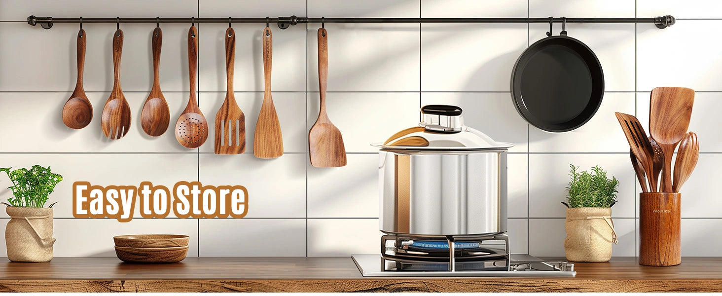 - Easy to Clean & Store: This wooden utensil sets are nonstick, easy to clean with warm water or soapy water by hand, then hang it in the kitchen to dry naturally. There are holes in the handle of each appliance, you can choose to hang it or put it on the cutlery rack, which is very convenient for storage.