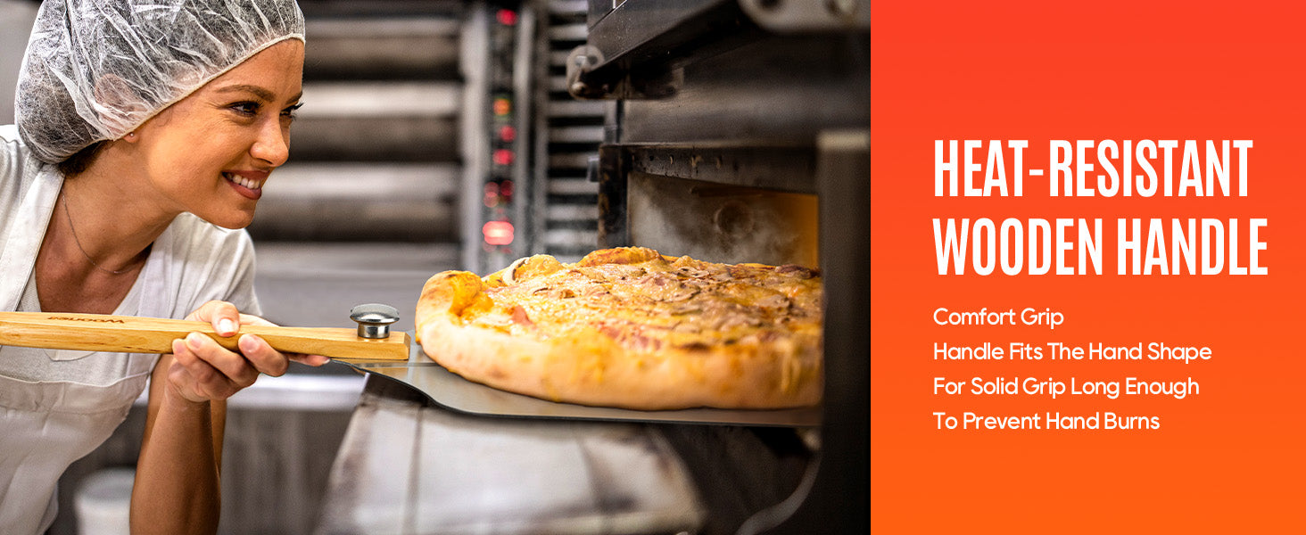 Compared to wooden or bamboo peels, an aluminum pizza peel is significantly thinner, making it much easier to slide under the pizza—especially once it’s fully baked and the crust is firm. The lightweight design makes handling effortless, while the smooth metal surface helps the dough release cleanly. It’s also more heat-resistant and easier to clean than other materials, making it a practical choice for both home and professional kitchens.